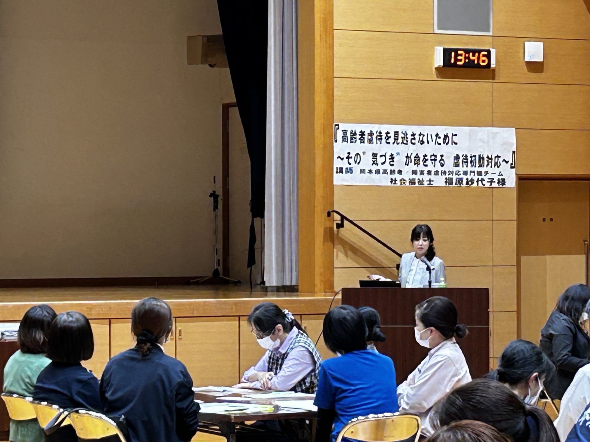 また、講演は、「高齢者虐待見逃さないために~その気づきが命を守る 虐待初動対応~」のタイトルで熊本県高齢者・障害者虐待対応専門職チーム 社会福祉士 福原紗代子氏が行われました。