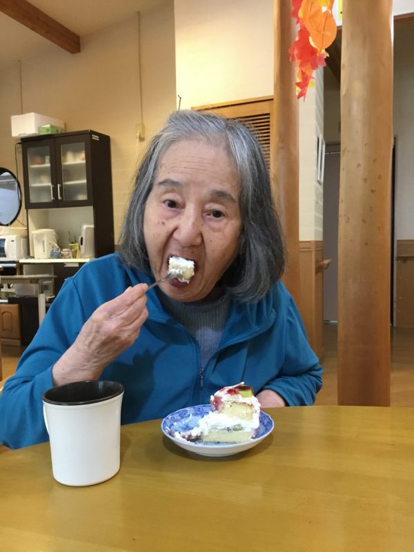 ご利用者様にもフルーツを切ったり誕生日ケーキ作りのお手伝いをしていただきました。(^^♪