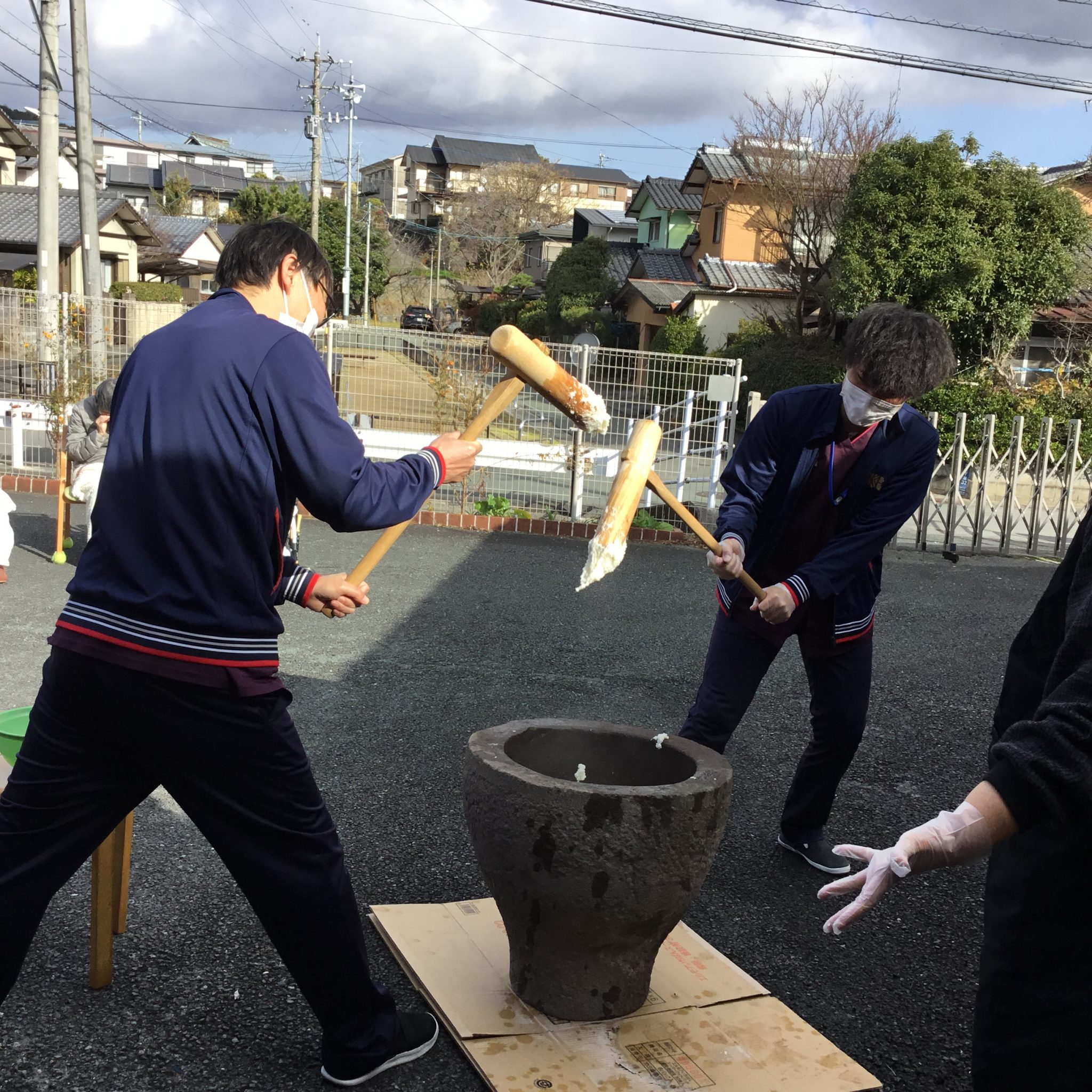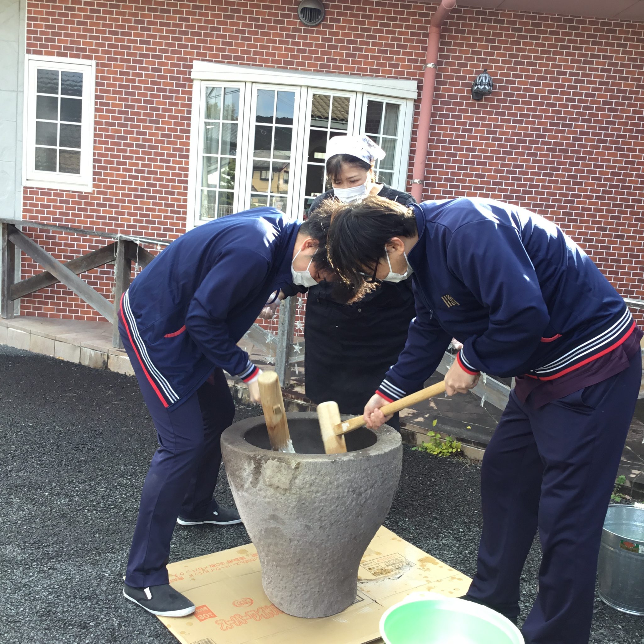 よいしょ!よいしょ!と掛け声をしながらぺったん♪ぺったん♪ ご利用者からは「ほい!がんばれ!いいぞ!」と応援の声をいただきました! 1年に1回しかしないので、スタッフの中には腰が・・・( ゚Д゚)!?