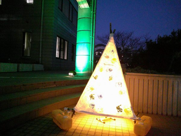 夜は河内公民館のライトアップやスカイランタンを楽しみました♪