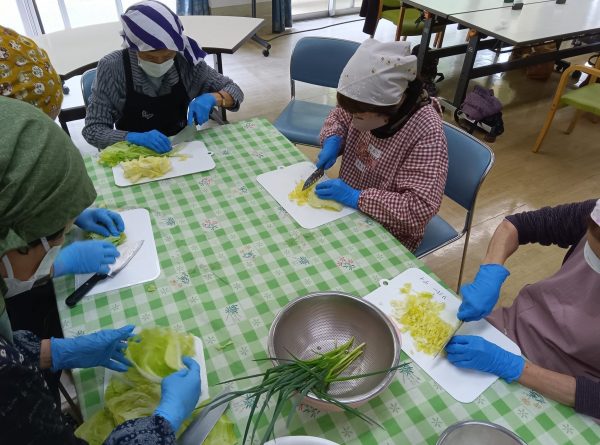 「昔はよく料理をしたものね」と、皆さんの包丁さばきは実に見事!