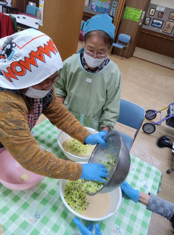 「あら、難しいわね」「見て、上手くできたわよ!」と、あちこちで笑い声が響きます。
