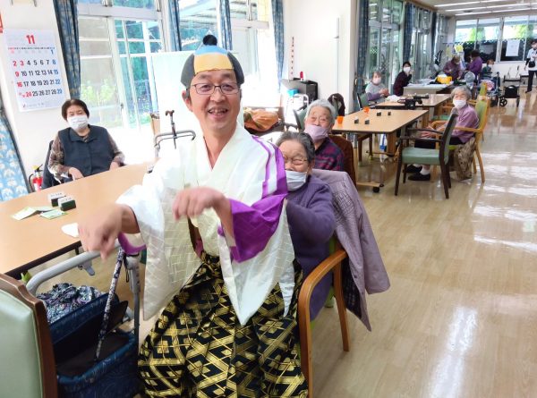 午後の部は、まず花魁(?)が練り歩き、会場が一気に華やいだ雰囲気に。利用者の皆さまから歓声があがりました。