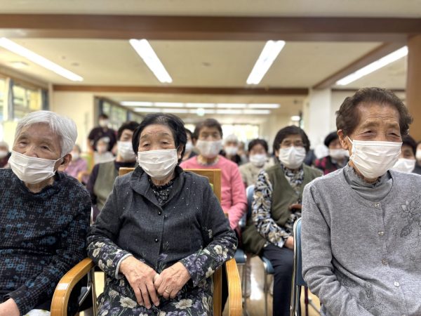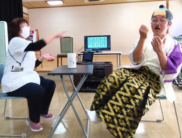 懐かしい童謡が次々と流れ、利用者の皆さまが口ずさみながら参加される姿が印象的でした。軽快なトークも交えられ、笑いの絶えない温かいひとときとなりました。