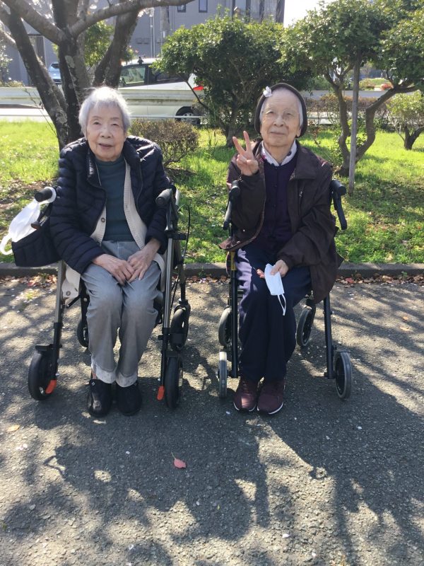歩行器や車椅子をお使いの方も、この日は春風を感じながらゆったりと散策を楽しまれていました。