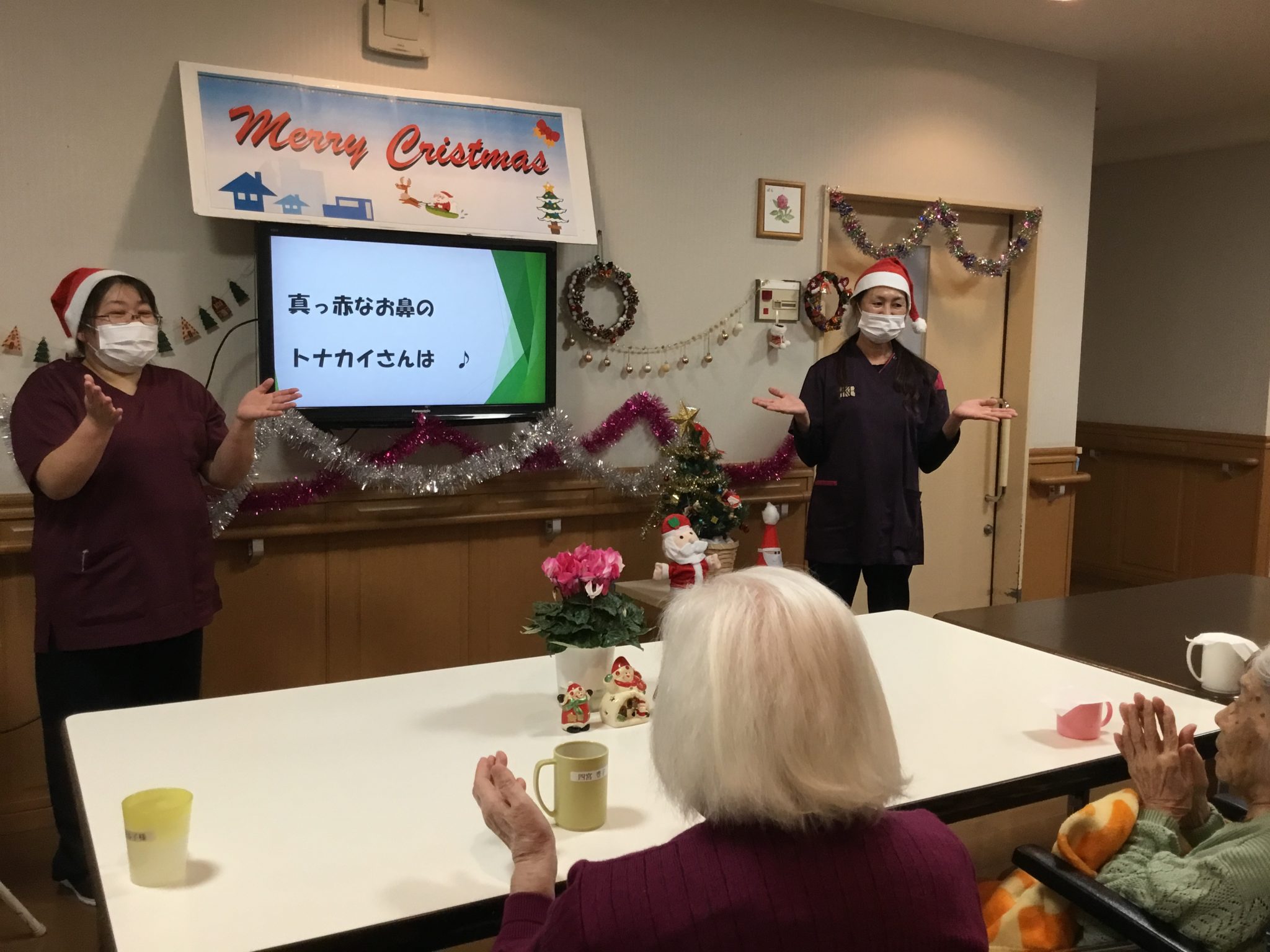 まずは皆様で「赤鼻のトナカイ」など、クリスマスソングの合唱です! 歌っているだけで楽しい雰囲気が広がり、自然と笑顔があふれます。(´▽`)♬