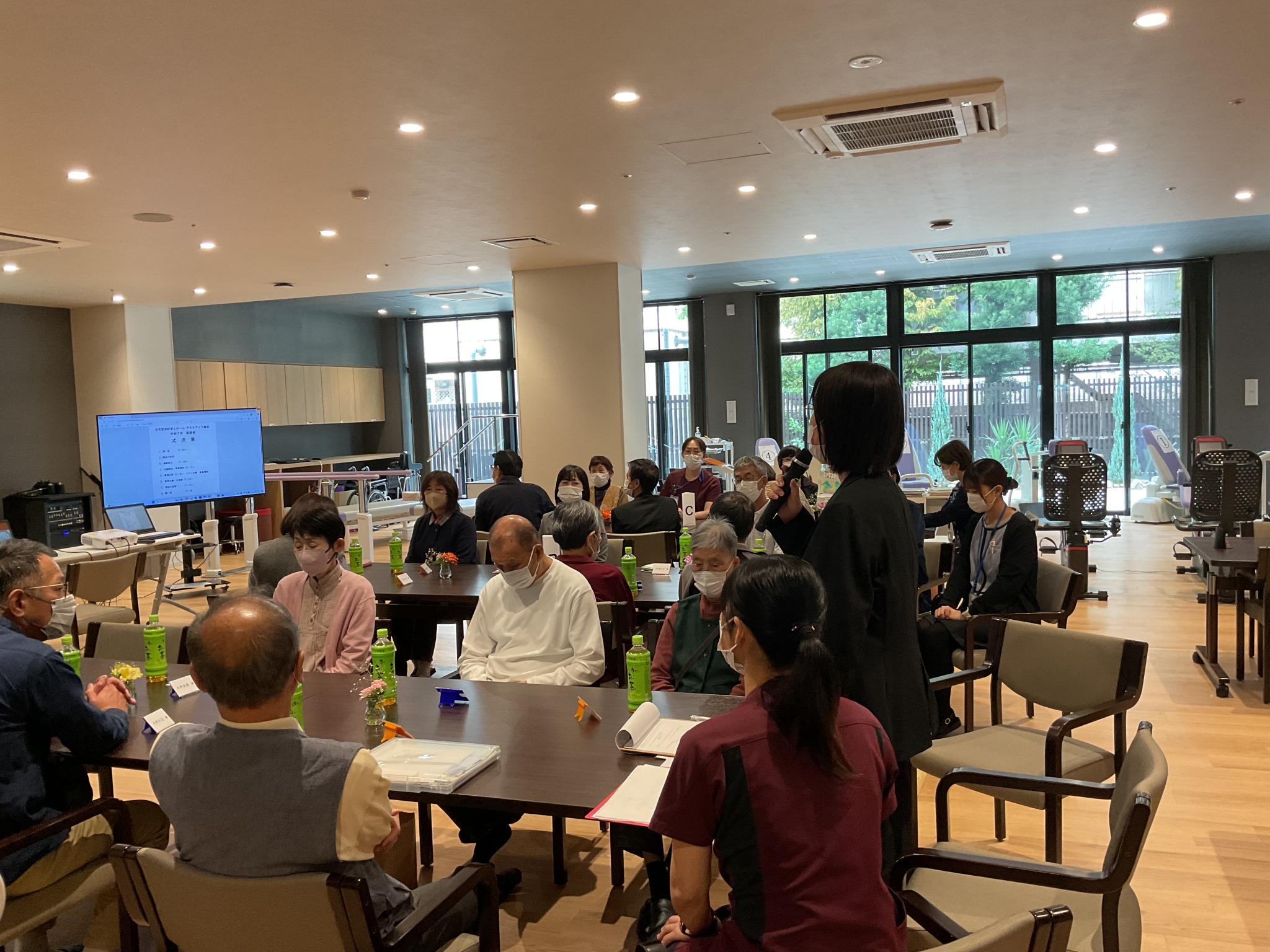 11月2日(日)、連休の中日で秋晴れの気持ちよい一日、アミスヴィラ森岳のデイサークルホールにて、第1回目となる家族会を開催しました。