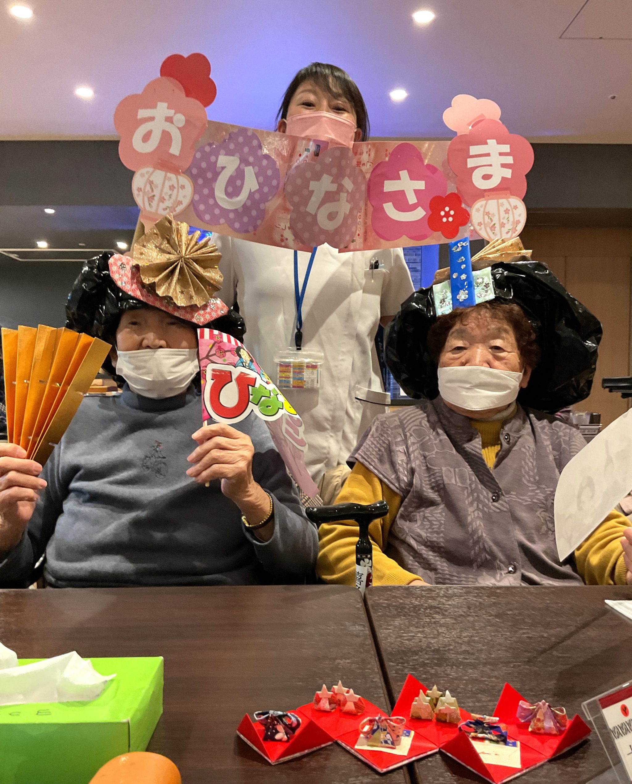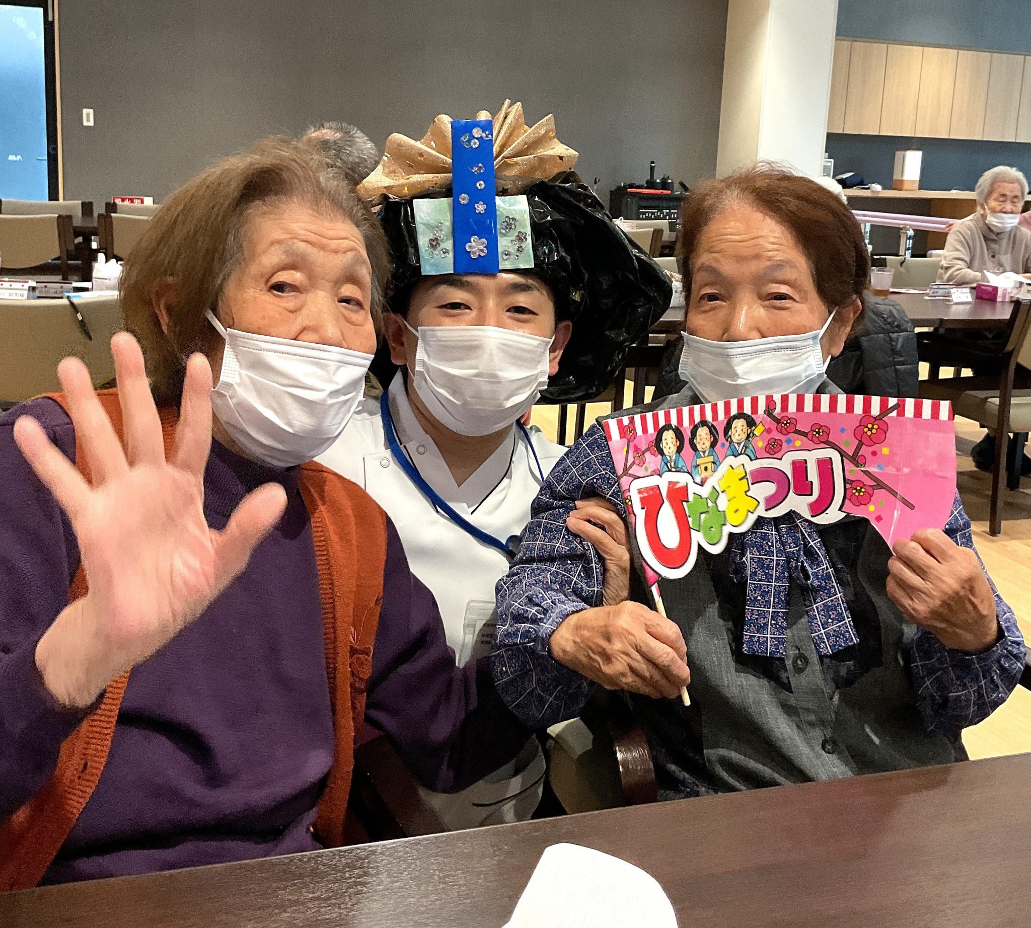 春の訪れを告げる柔らかな日差しが差し込む中、森岳デイサークルでは桃の節句をお祝いするひな祭り会を開催いたしました。
