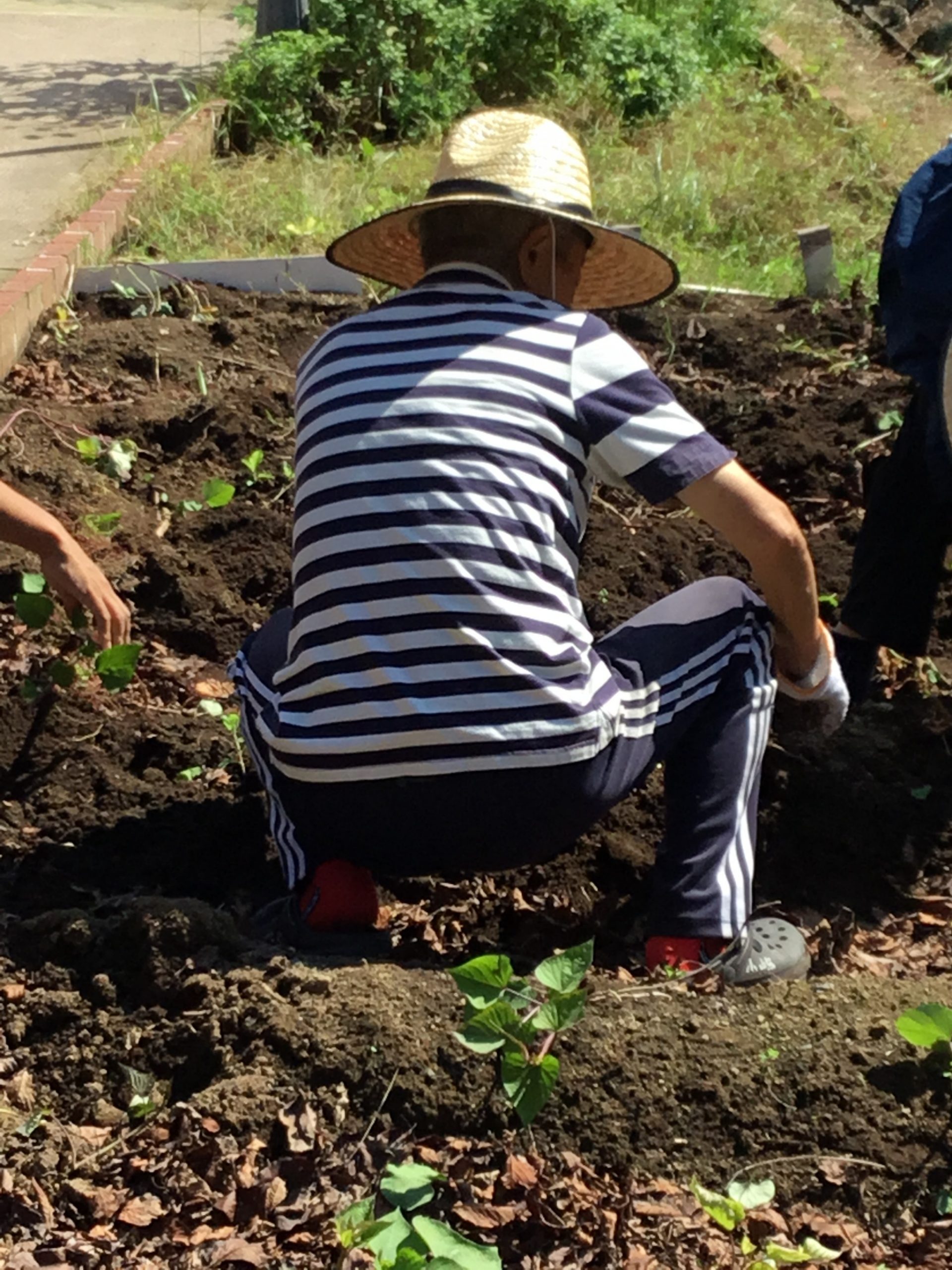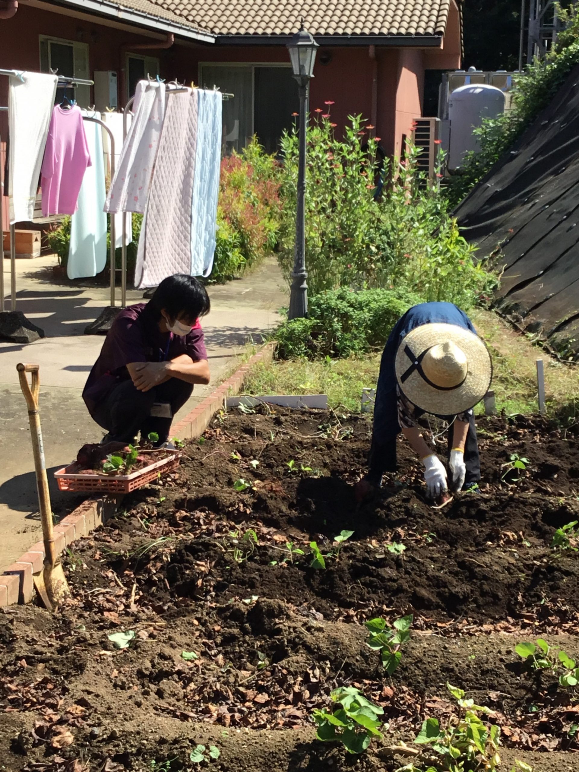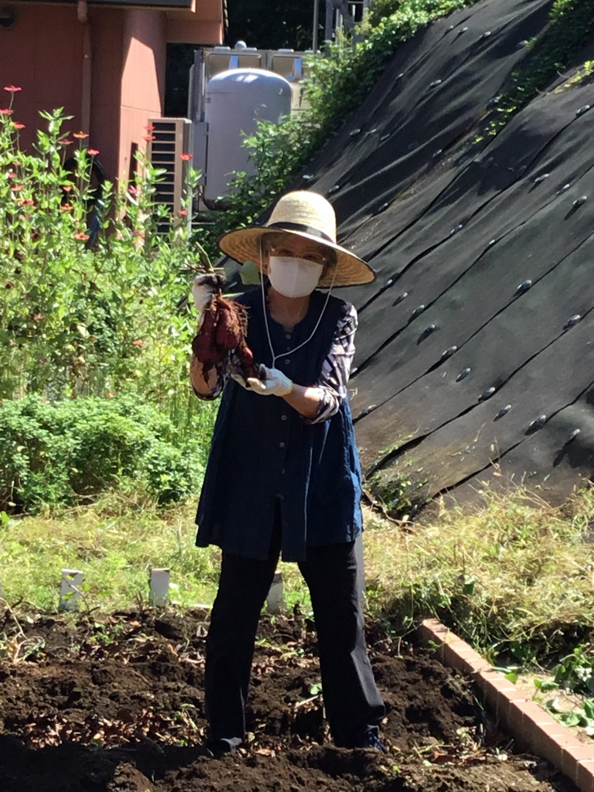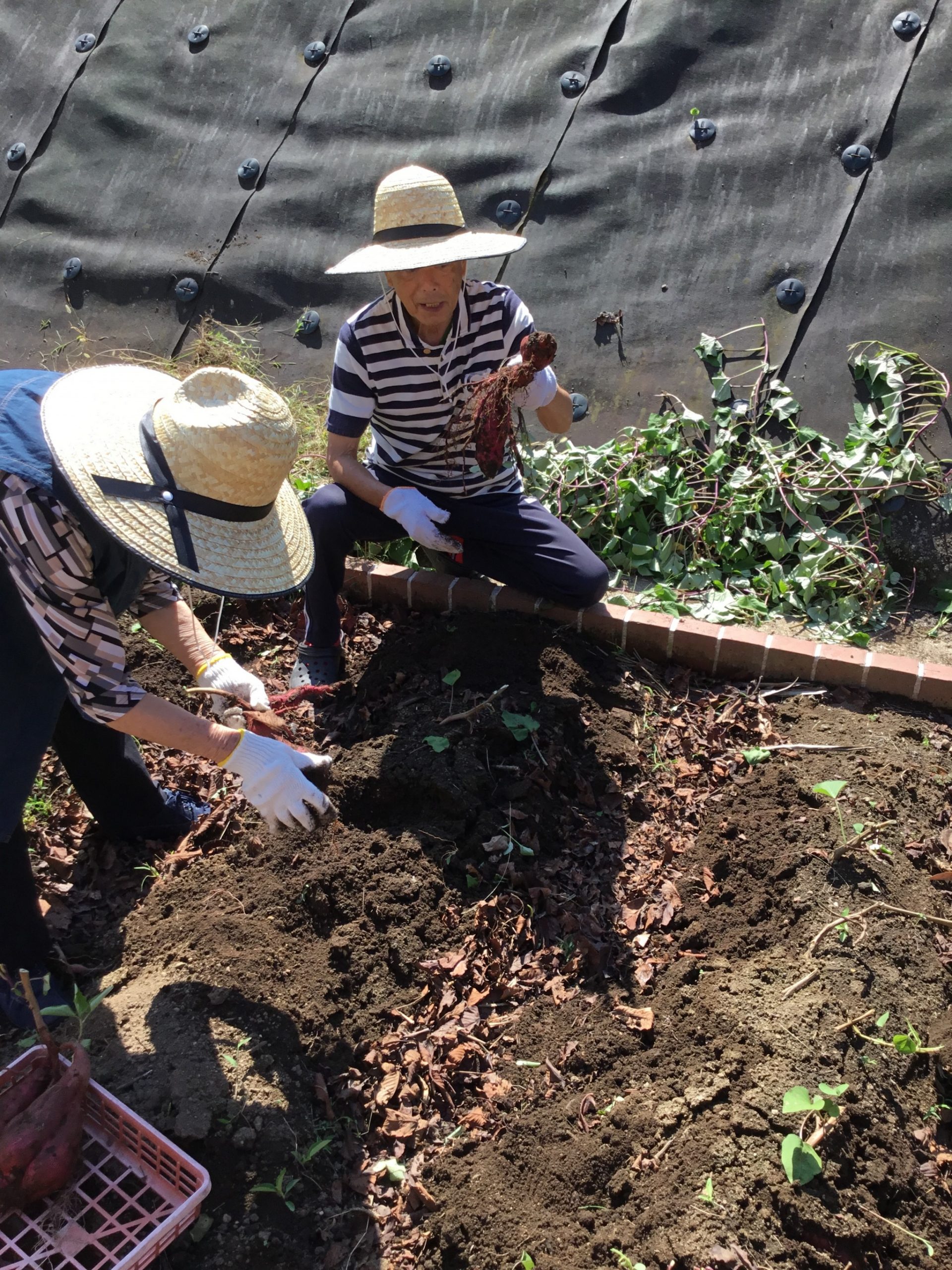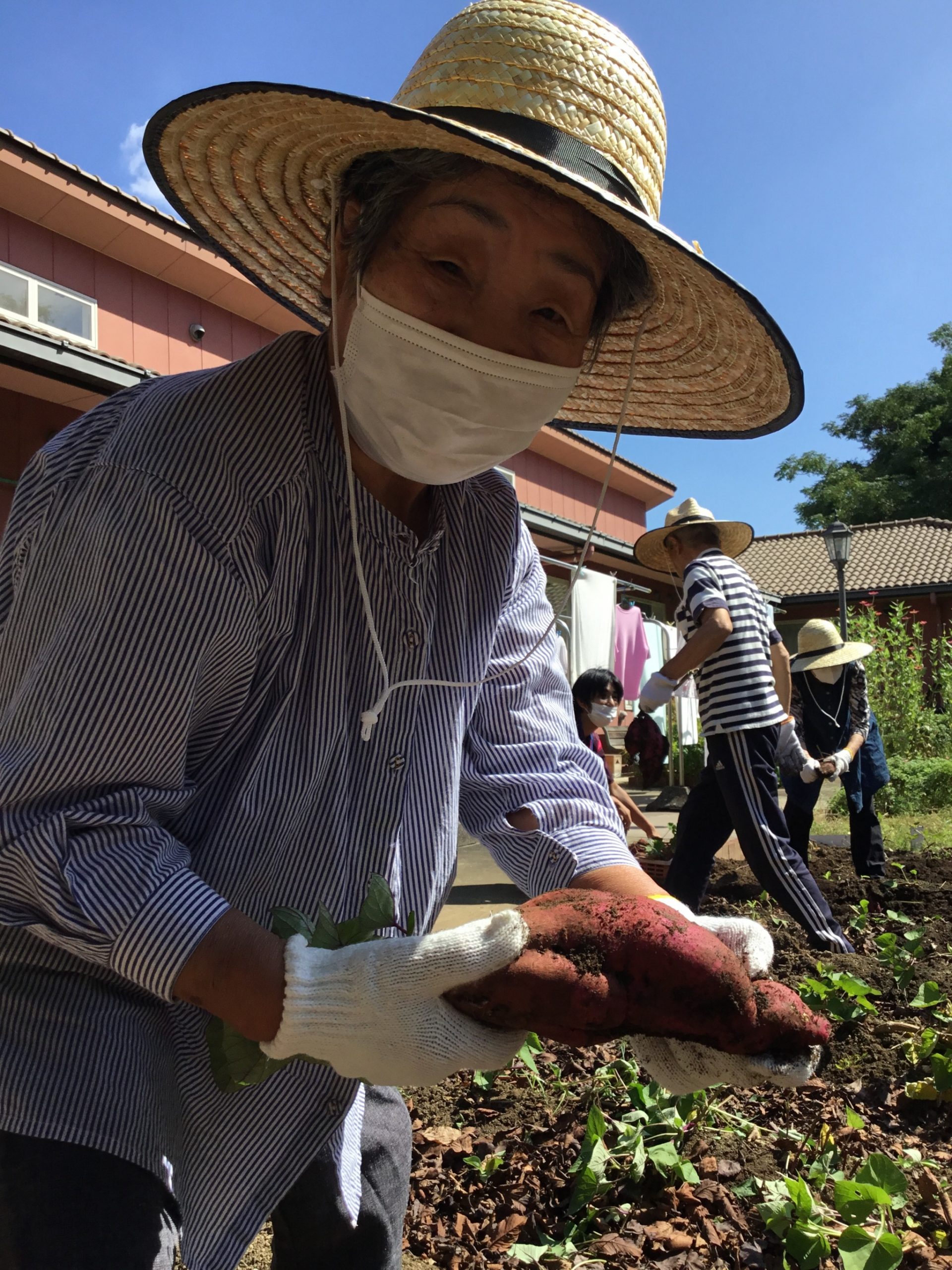 ケアセンター敷地内農園にて、サツマイモの収穫を行いました。