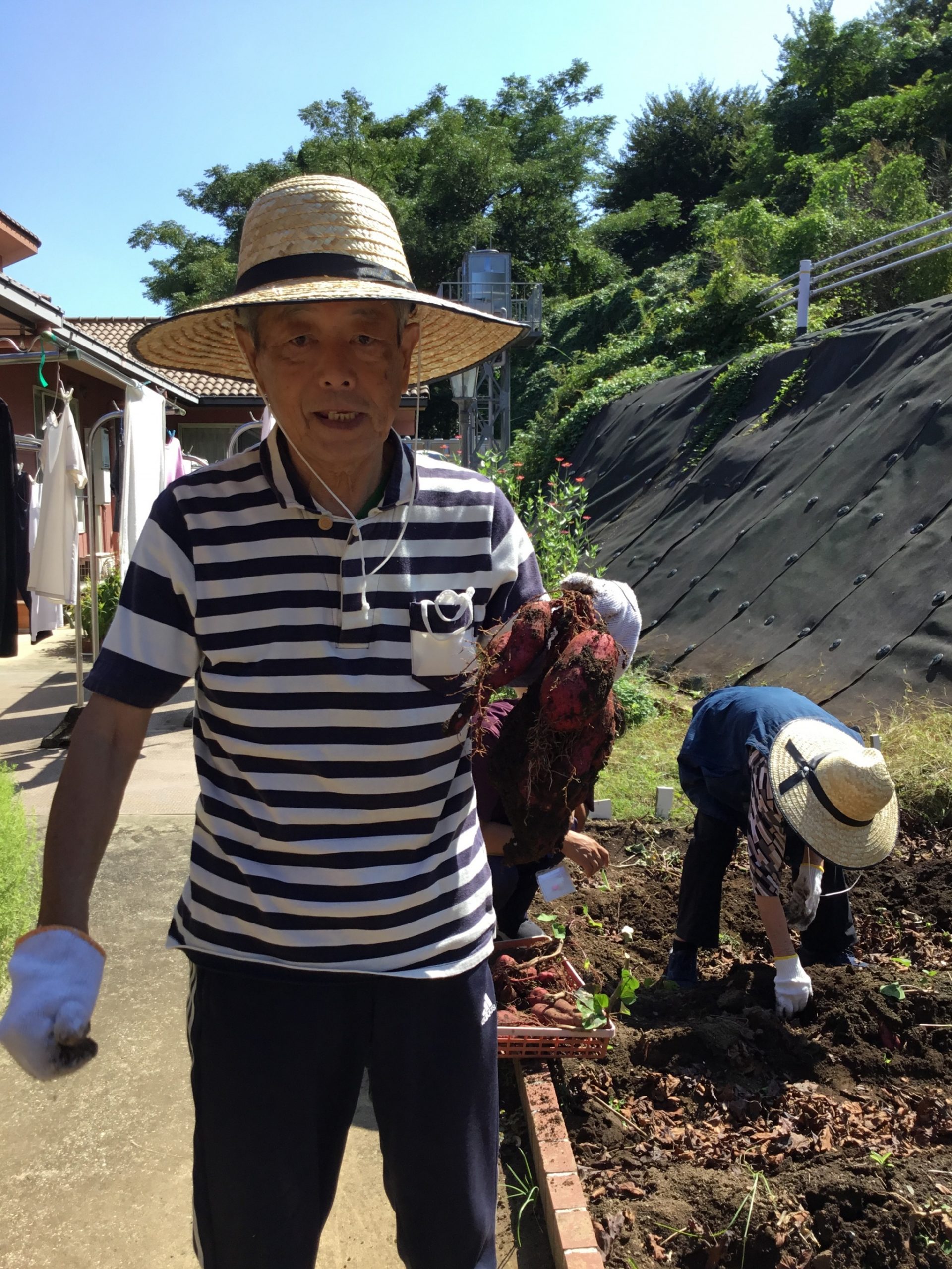 ケアセンター敷地内農園にて、サツマイモの収穫を行いました。