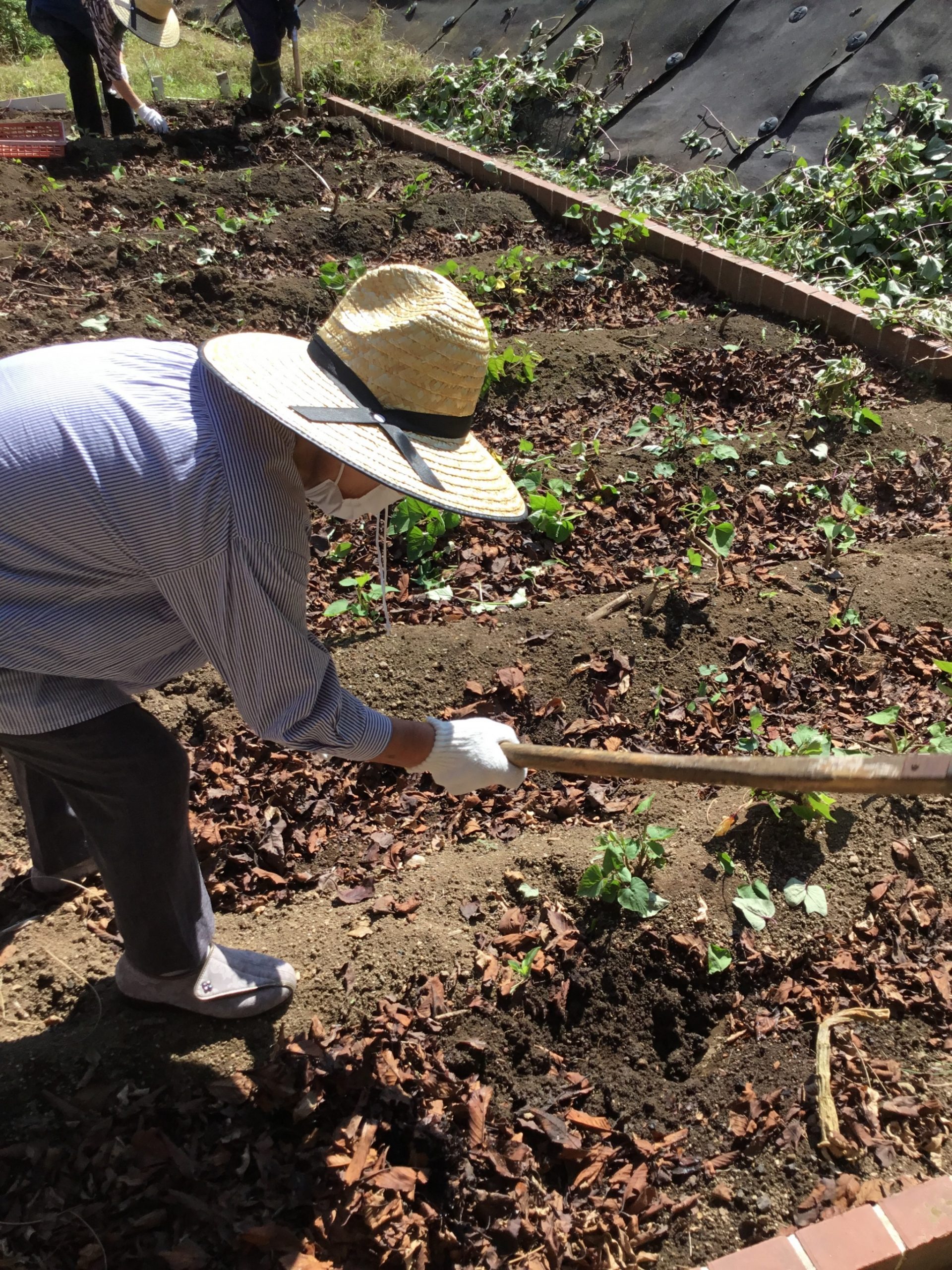 「昔取った杵柄や~♪と、鍬を振りかぶるご利用者。
