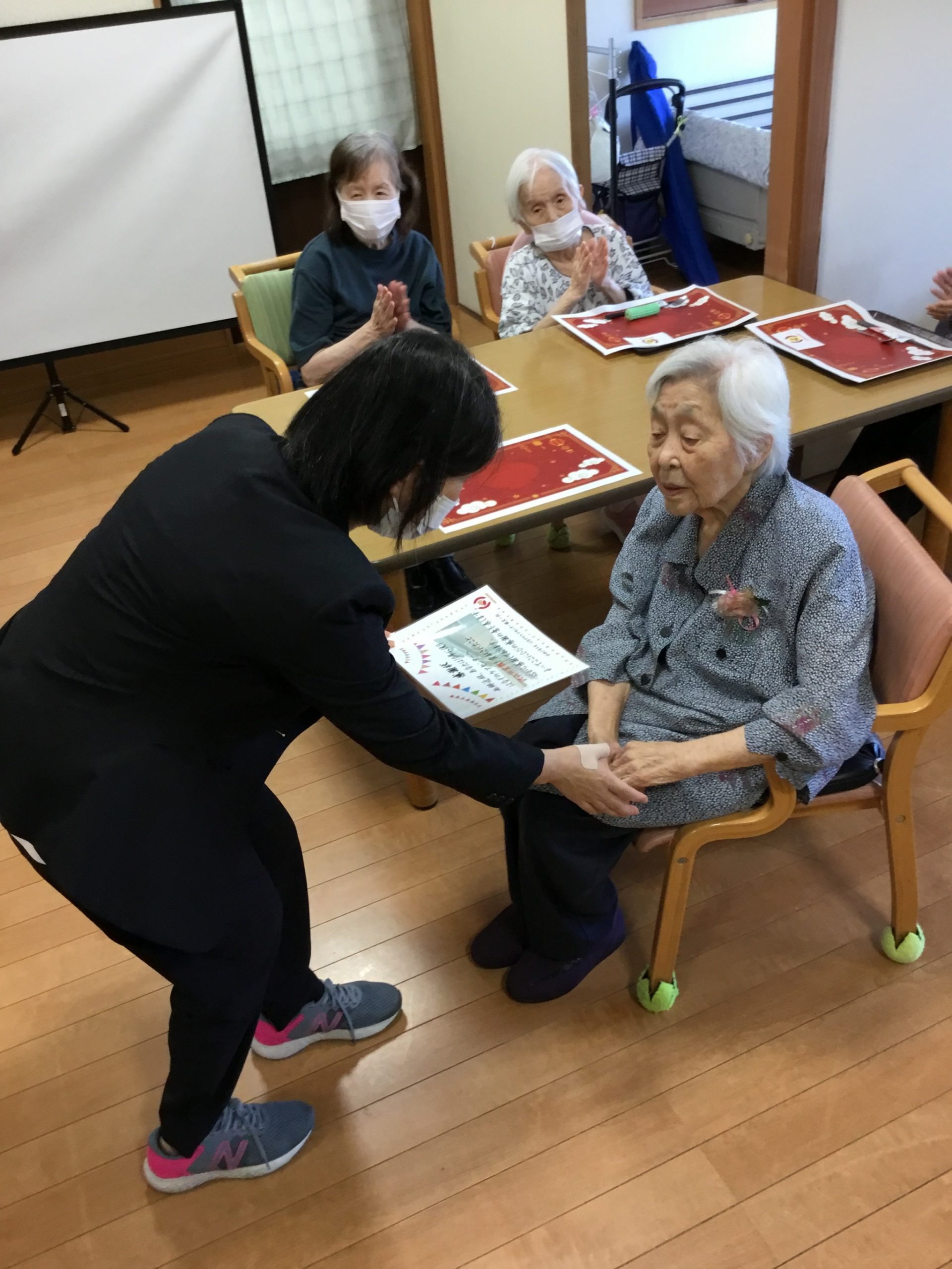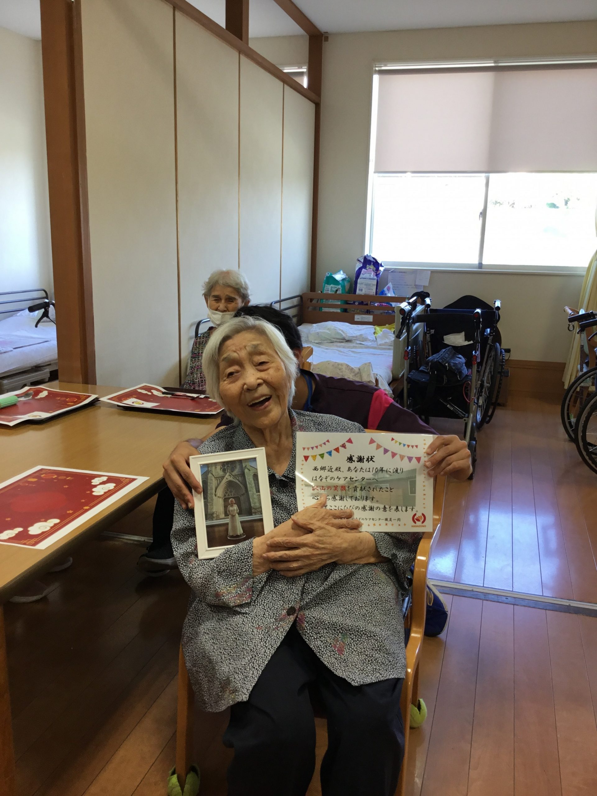 午前の部では、開設してから小規模多機能ホームを利用されて長い方を表彰させていただきました!
