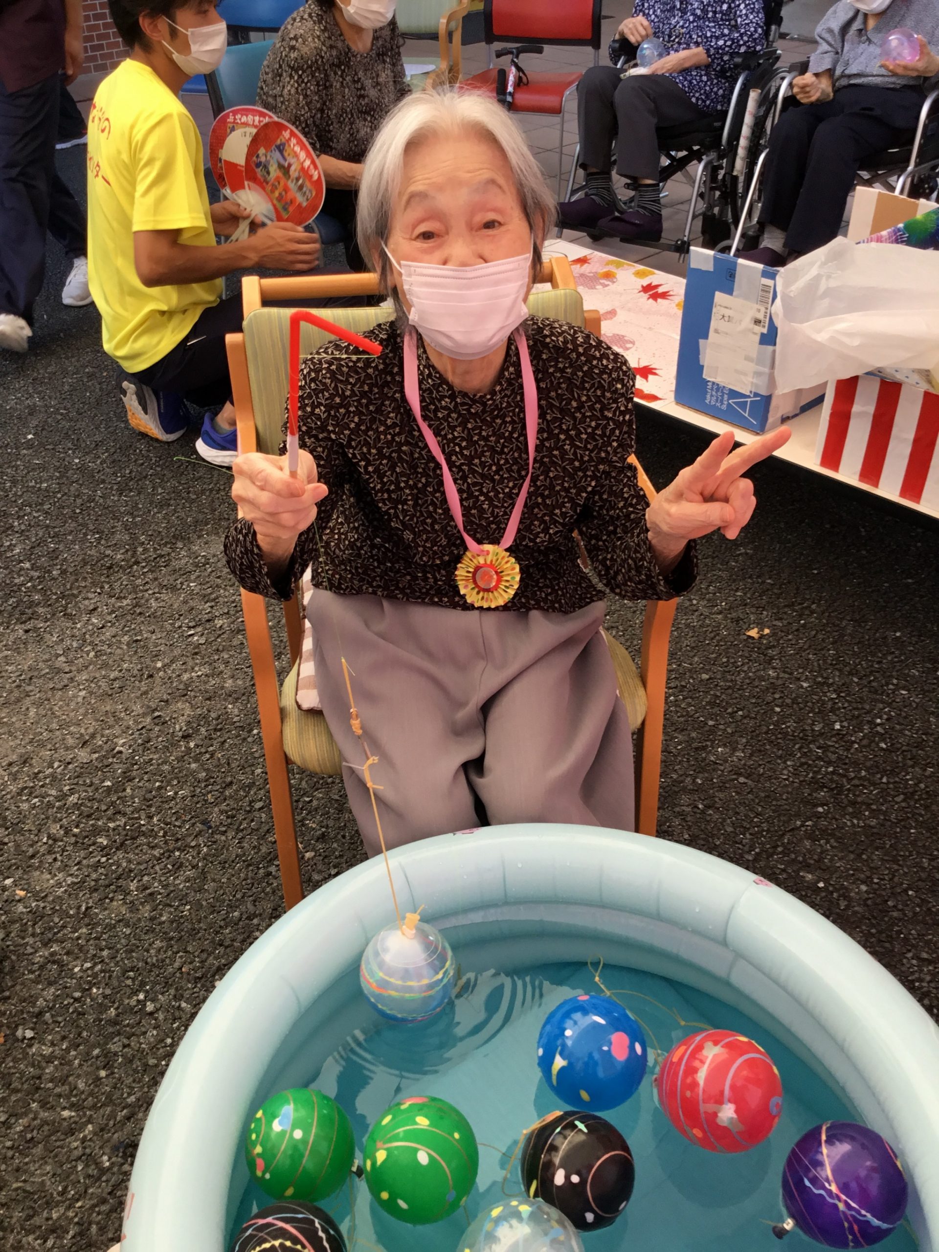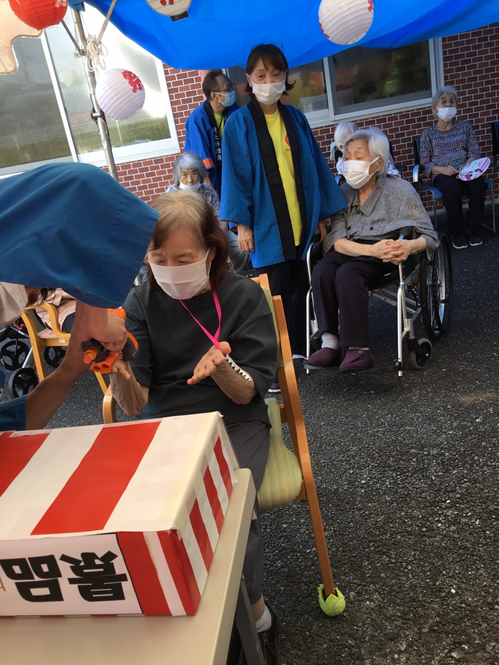 ケアセンター玄関横にブースを作り、外で楽しんで頂きました( *´艸`)