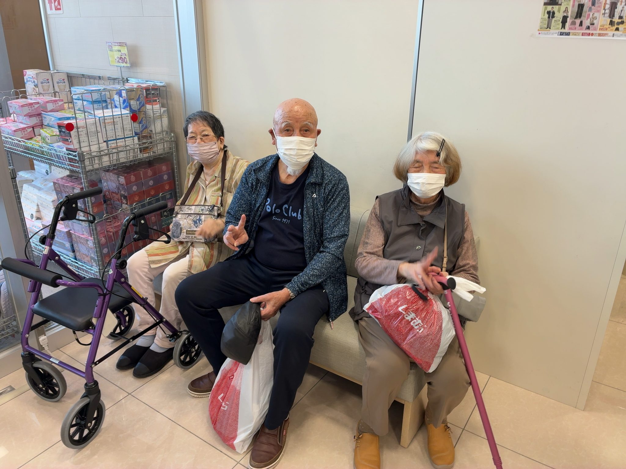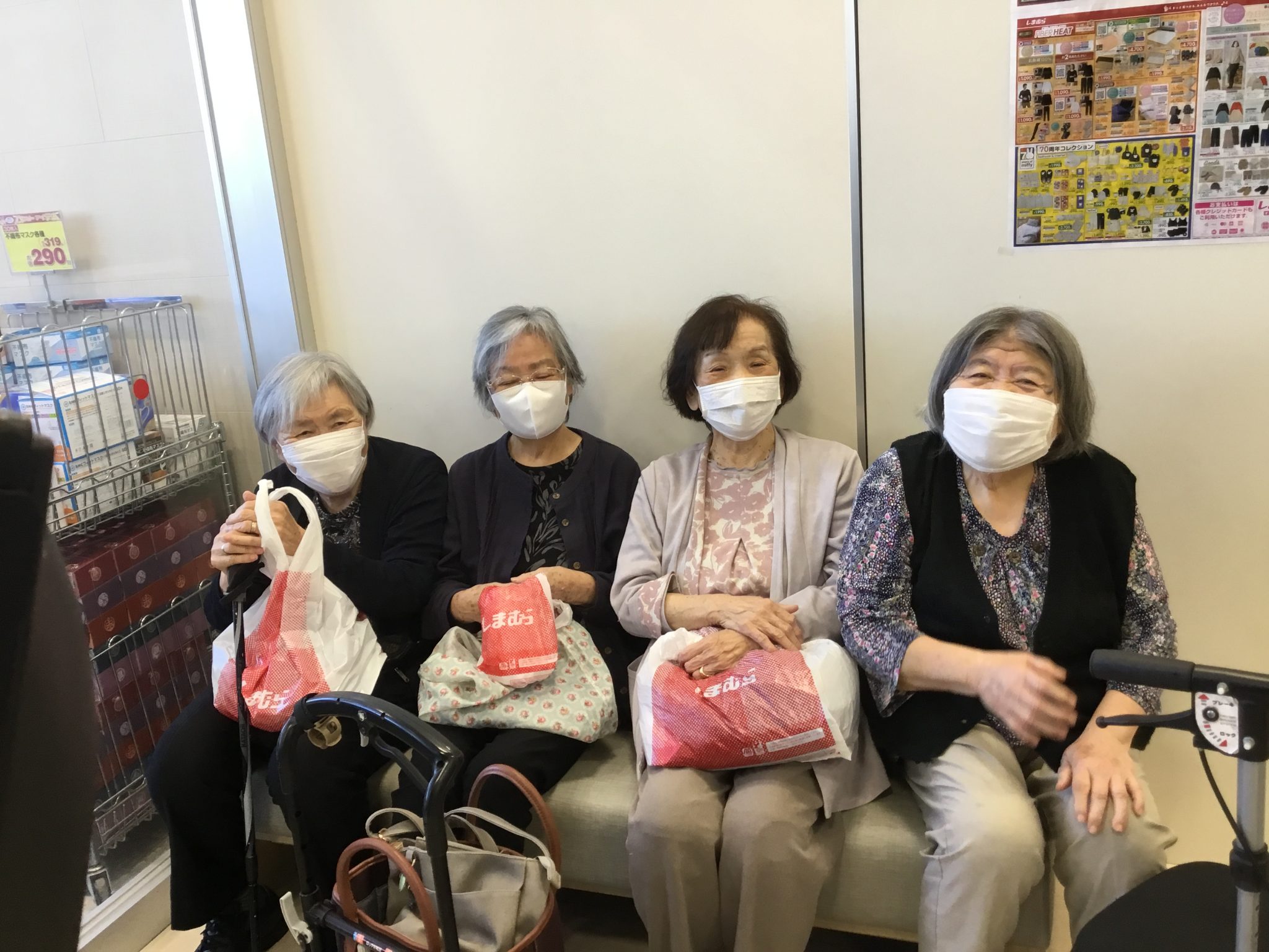 買い物も終わり、ベンチで一息。