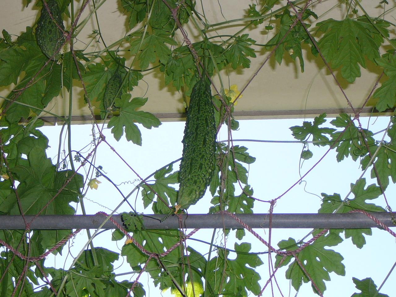 夏場の暑い時期はゴーヤカーテンとなり暑い日差しを遮り過ごしやすく実ったゴーヤは、その日の食事に!!
