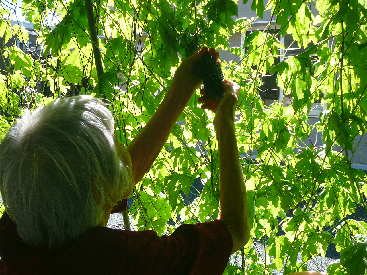 「また葉の茂ってげんきになったね!」「またゴーヤのできるね!」とご利用者同士談笑されてました。
