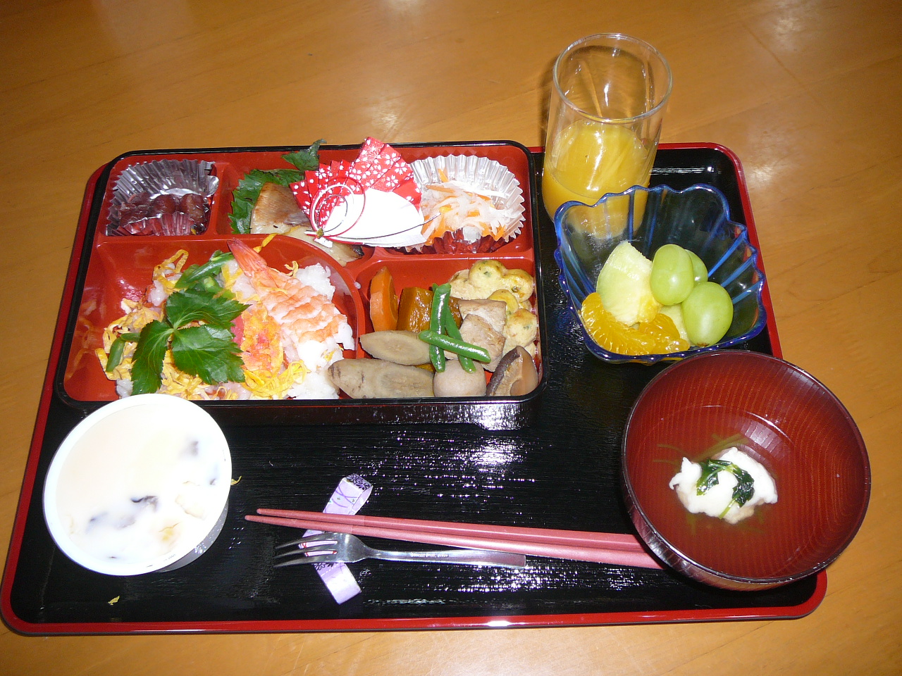 今年もへたみ家職員手作りのお弁当!!ちらし寿司、西京焼き、煮物など心を込めて作りました!