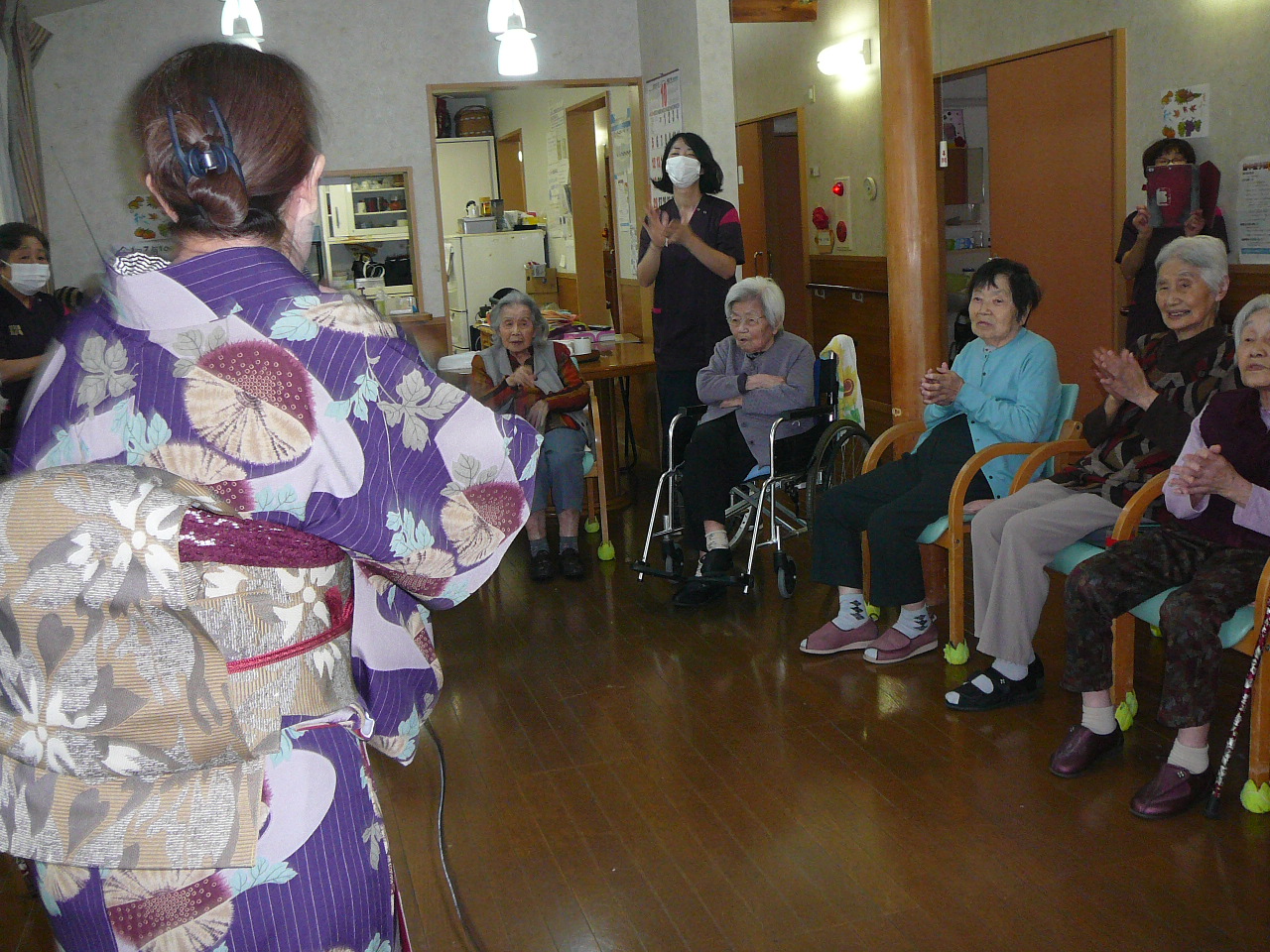 ご利用者に「きよしこの夜」「赤鼻のトナカイ」を唄っていただきながら