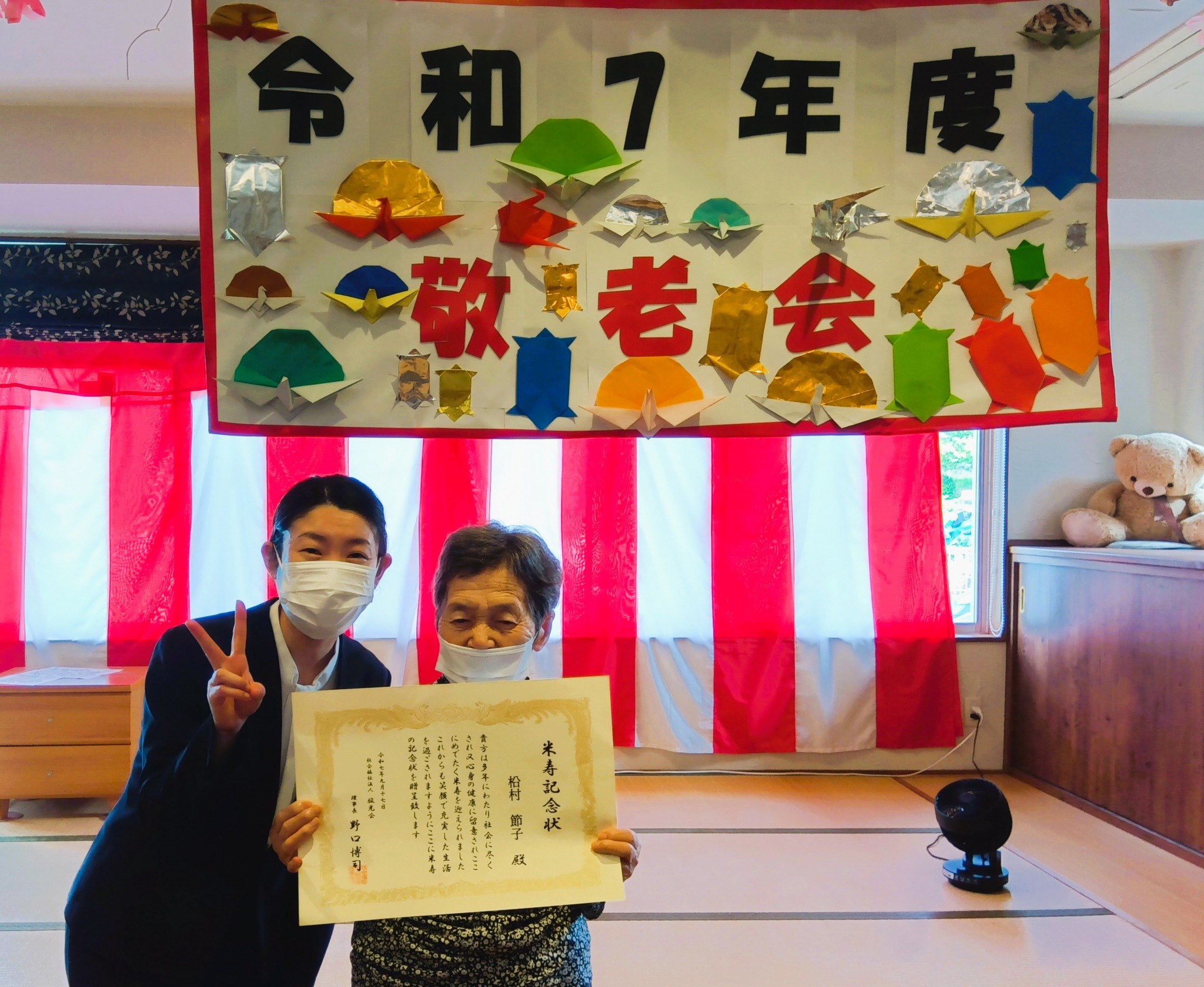 今年は米寿の方が1名で記念品と職員一同から日々に感謝を込めて【お祝いのお言葉】を