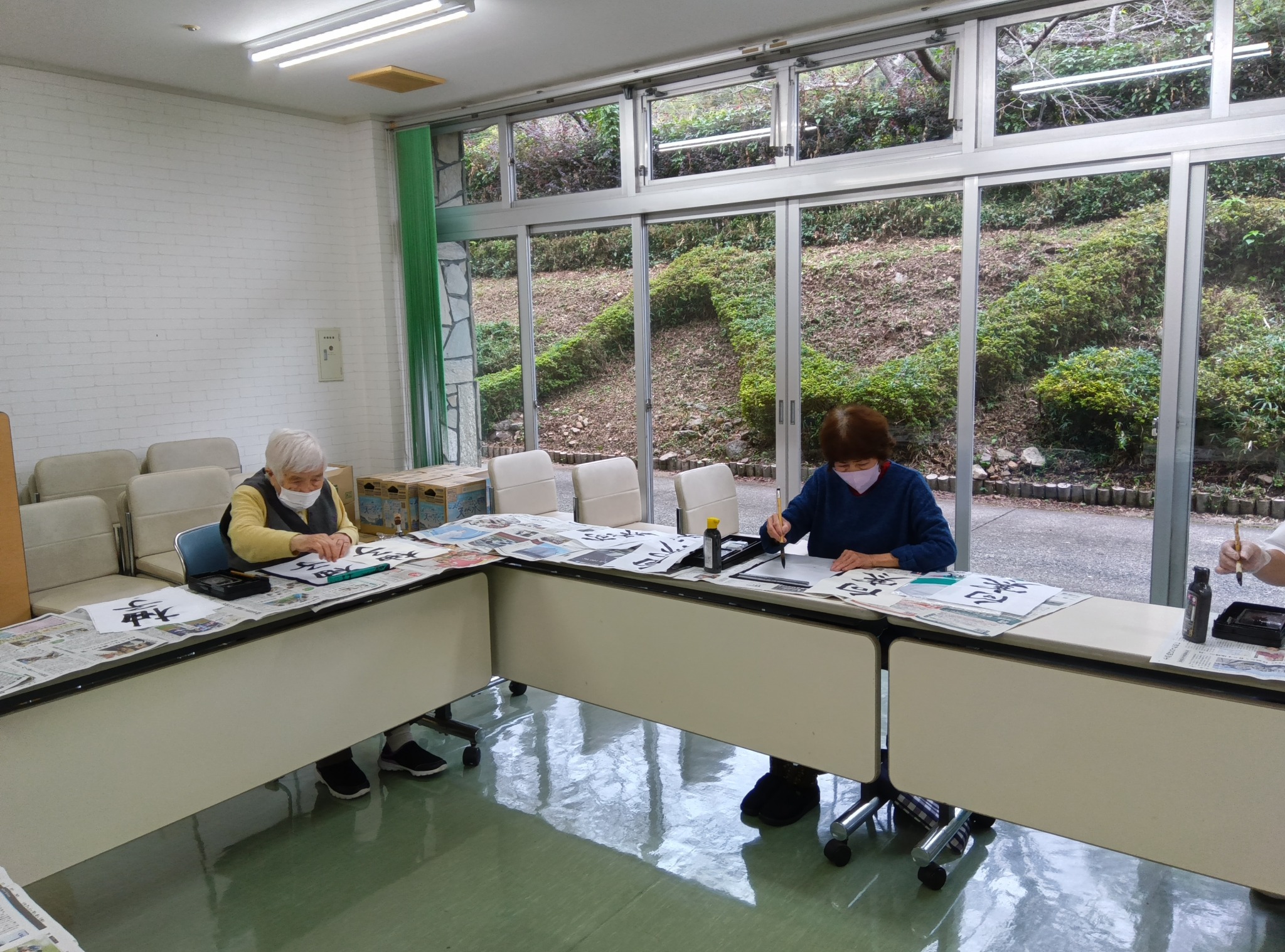 中には久しぶりに筆を持つ方もいらっしゃいましたが、職員がそっと手を添えてお手伝いしながら、