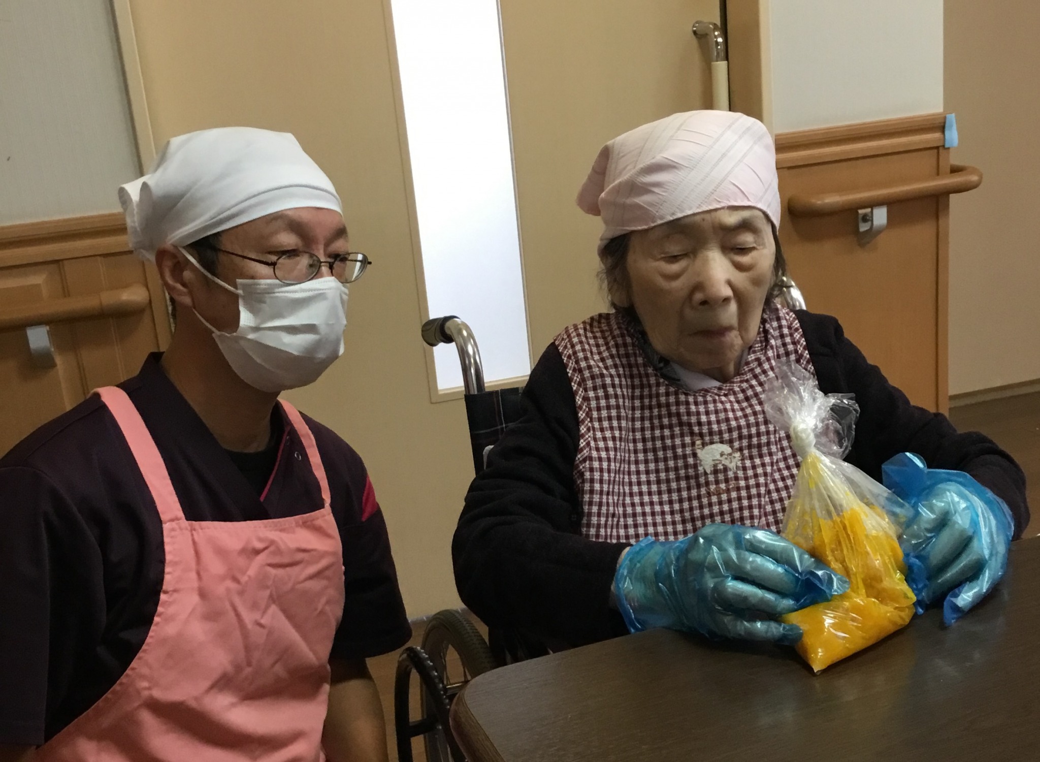 ユニットホームでは、かぼちゃを使って、かぼちゃきんとんを作りました。