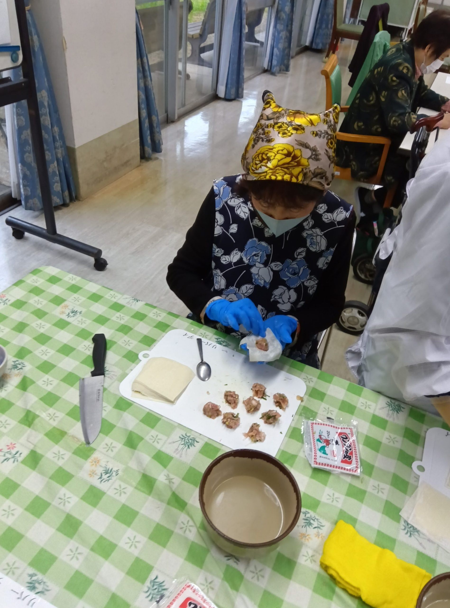 皆様から「おかずになる物を作りたい」と要望がありワンタンスープを作りました。