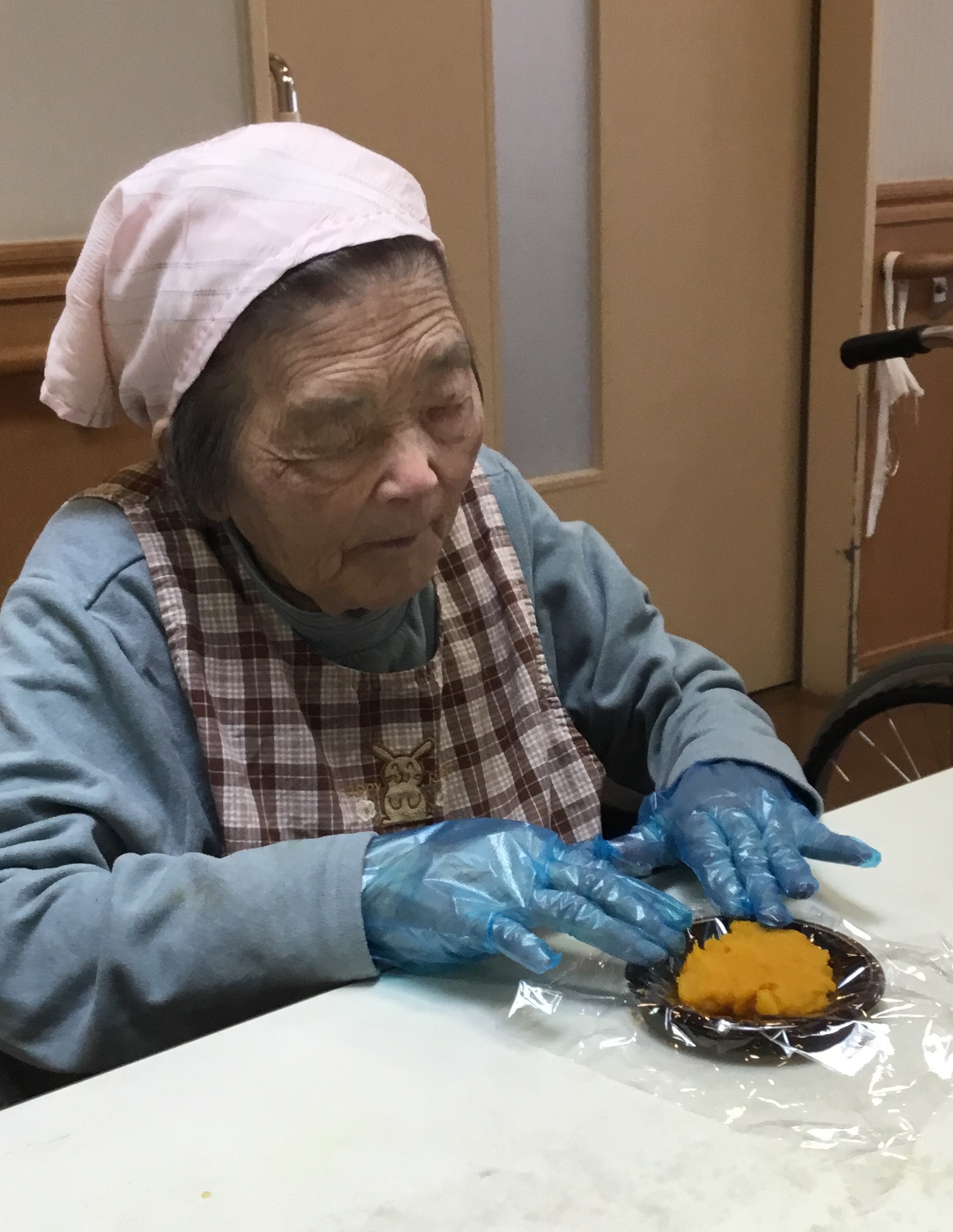 ユニットホームでは、かぼちゃを使って、かぼちゃきんとんを作りました。