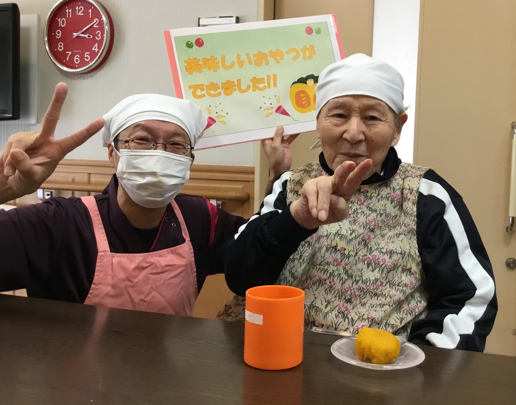 令和7年12月18日、リバーサイド熊本ユニットホームのご利用者と芋団子ぜんざいを作りました!(^^)!