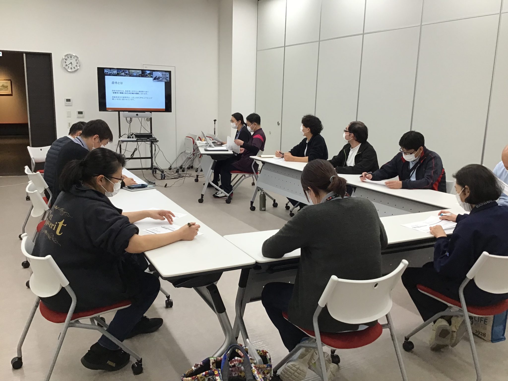 虐待防止勉強会では、不適切なケアからグレーゾーン、そして虐待へとつながる過程を確認し、