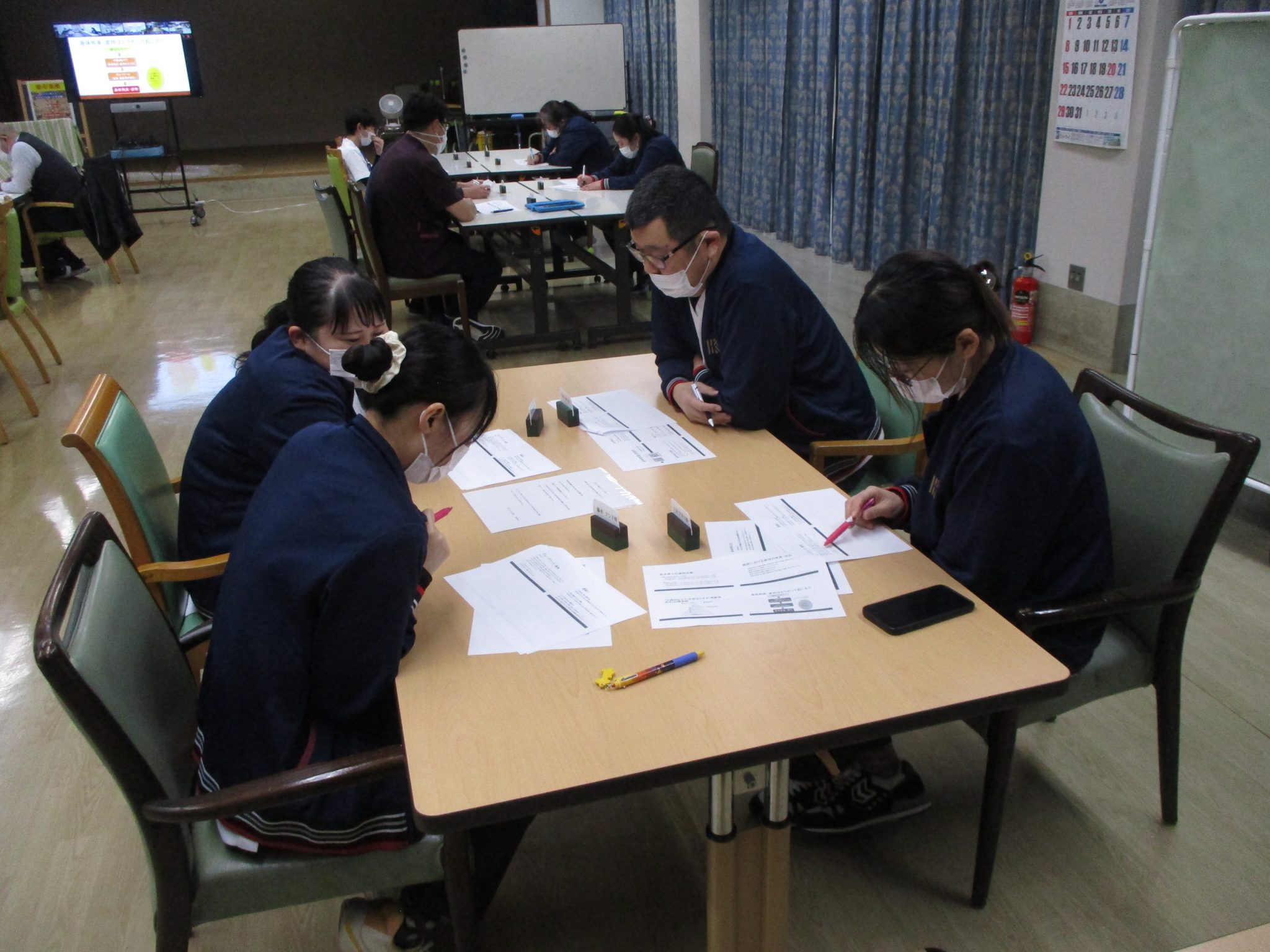 業務終了後、法人内各施設をモニターでつなぎ、全体での研修となりました。