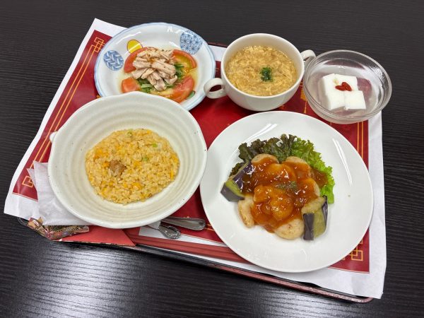 昼食メニューは、『中華のコース』、まずは皆さんで乾杯♪