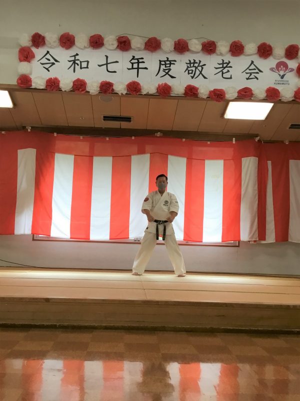 お次は日吉道場様をお招きし、型を披露して頂きました。力強く迫力ある演武に職員含め全員くぎ付け‼貴重な体験をさせていただきました。