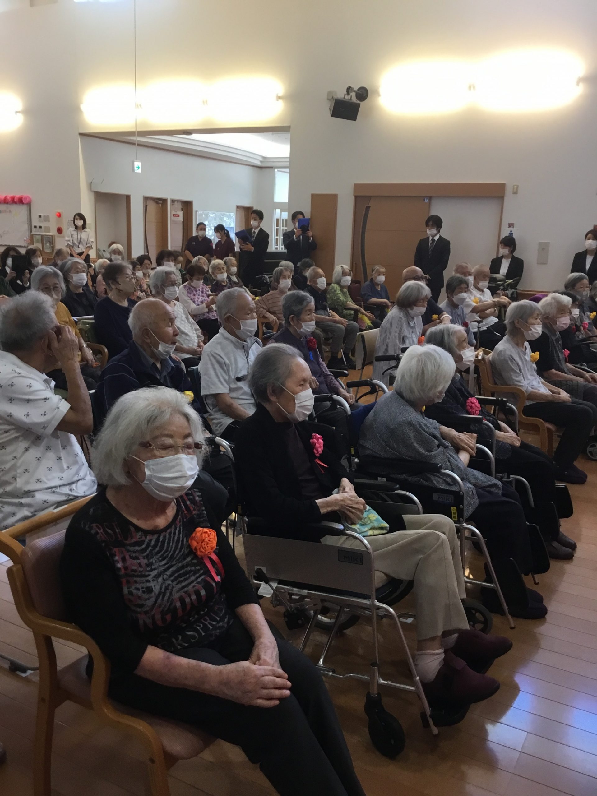今回は、感染対策のもと数年ぶりに、はなぞのケアセンター全部署合同での式典の開催となりました!!