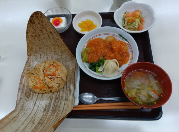バースデーランチは中華おこわ・エビチリソース・春雨スープ・棒棒鶏サラダ・杏仁豆腐と中華ざんまいのメニューでした
